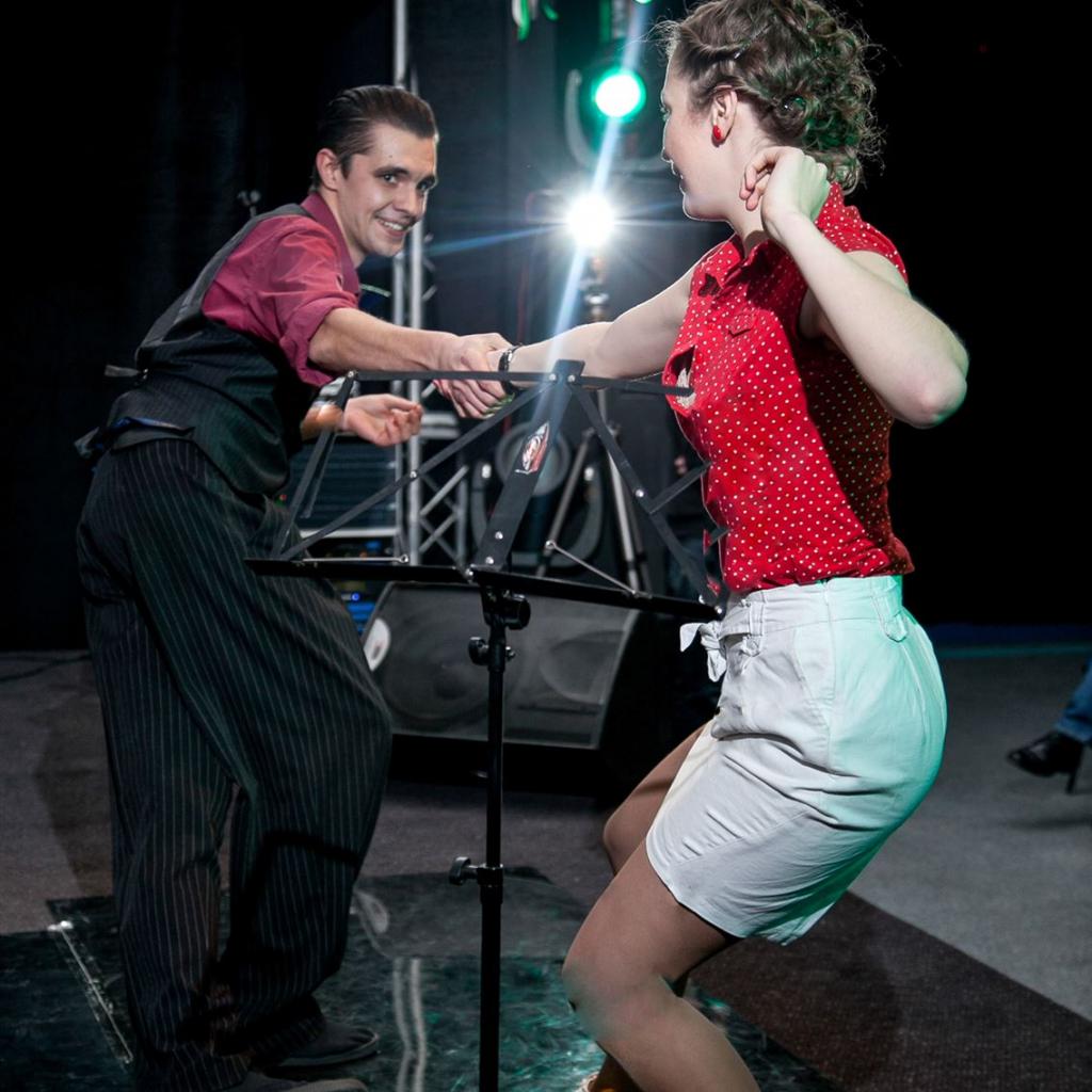 Charakteristisch für den Rock ’n’ Roll sind der gesprungene Grundschritt mit Kicks und Kick-Ball-Change und die Akrobatik. Lockere, sportliche Kleidung wäre nicht schlecht mit bequemen Turn- oder Freizeitschuhen. Aber keine Angst - es wird nicht gleich in Sport ausarten!